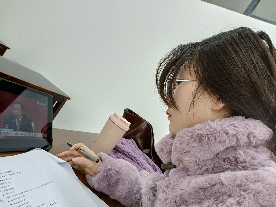 李月:11月12日中共中央举行新闻发布会,介绍党的十九届六中全会精神,这是两个一百年交汇历史节点上召开的一次大会。发布会介绍了十九届六中全会最重要的成果。对于新时代中国特色社会主义发展具有重要意义,有利于引导全党全国各族人民努力奋进,向第二个百年目标迈进。作为一名中共预备党员,要坚定意志不动摇,要攻坚克难,开拓创进,在新时代发挥出青年人的力量,为早日实现中华民族伟大复兴而努力奋斗。少年强则国强,作为研究生的我们,脚踏实地,做好科研研究工作,肩负起自己的责任!
