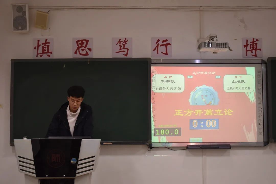 随后,进行了初赛抽签仪式,各队队长在“贵师·正心·明理·笃学·力行”十个字中任意选取一字,每个字代表一个题目,由此确定了各自的辩题及对阵方。