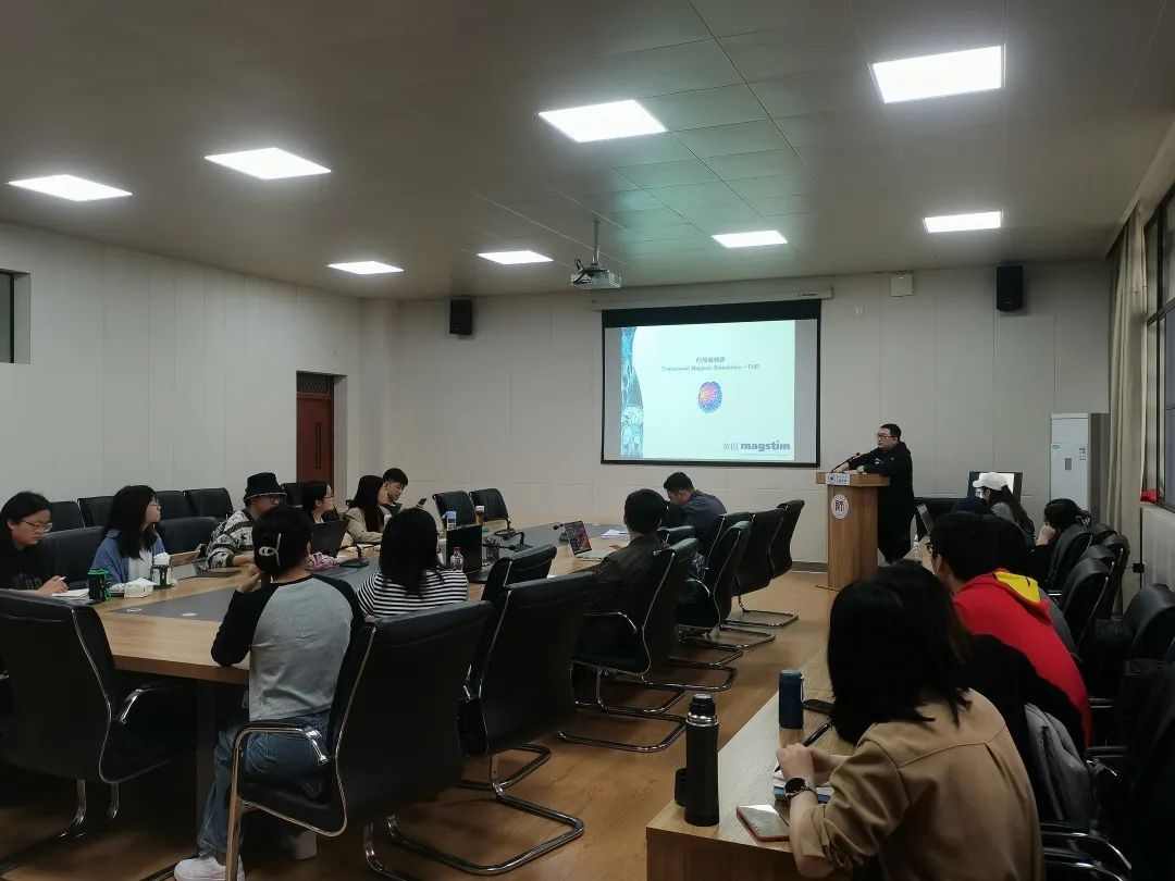 为保证广大师生对TMS导航及刺激仪正确、规范地使用,4月18日,437ccm必赢国际官网在脑成像中心三楼会议室举行了TMS导航及刺激仪的基础理论与实操培训,由TMS工程师曲扬担任主讲人,学院二十余名师生参加此次培训。