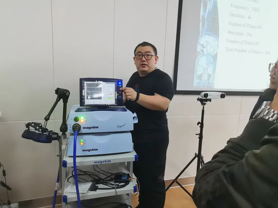 曲工程师首先详细介绍了TMS和Visor2导航的相关概念及其仪器基本组成,然后与参培师生进行了有序地交流互动,最后借助实验仪器的实物操作,向到场师生直观演示TMS实验的具体实际操作流程,并悉心指导在场师生完成从硬件连接到软件操作的一整套实验过程。