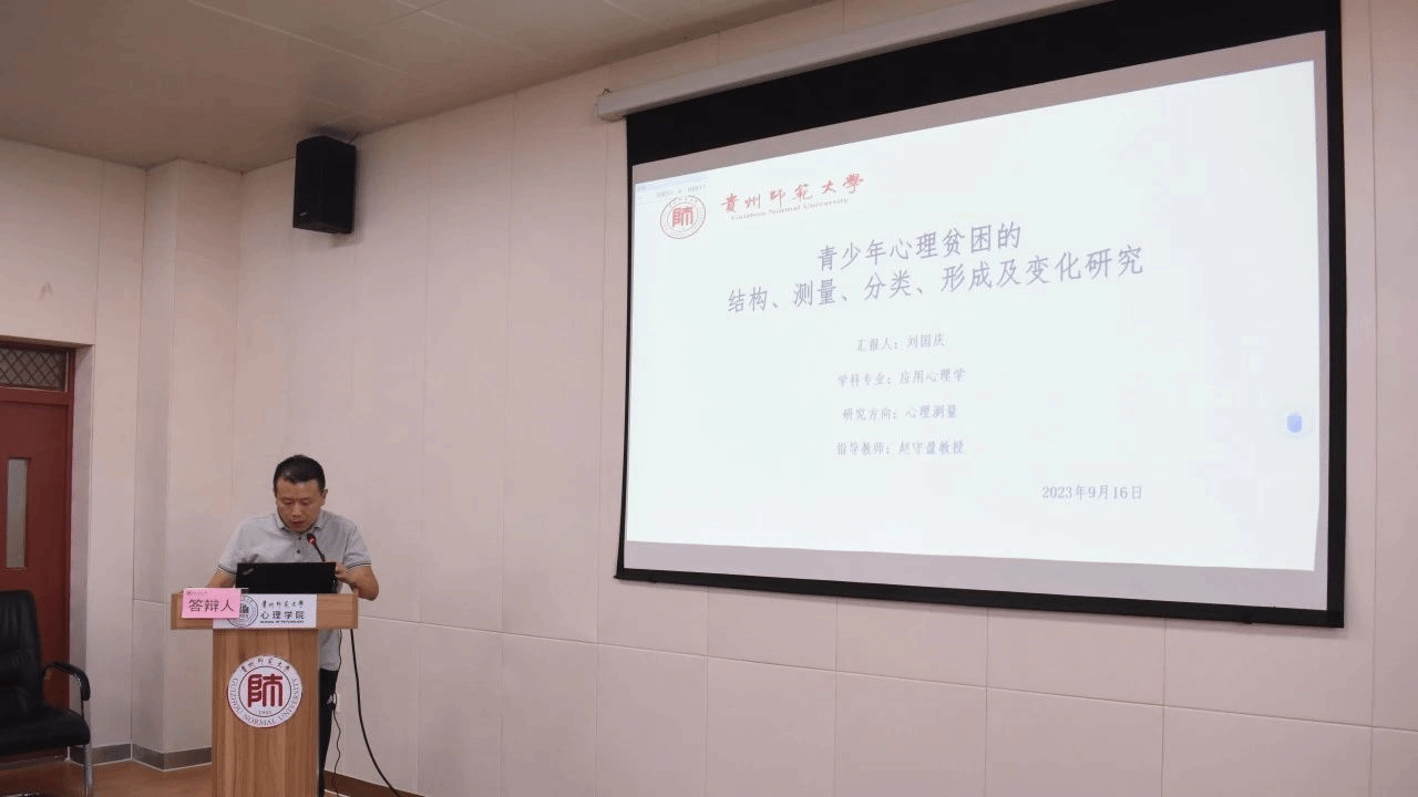 答辩过程中,三位博士研究生杨忠萍、邹维兴、刘国庆就各自论文,即《简单心算提取的特点及认知》《青少年反思性思维发展特点及其与认知控制的关系》《青少年心理贫困的结构、测量、分类、形成及变化研究》先后通过PPT展示,就论文选题缘由、研究思路、研究框架、研究方法以及研究取得的贡献等五个方面,进行了全面而精炼的阐述。答辩主席和委员们分别对各博士学位论文题目精炼、研究方法运用、理论基础融入、研究逻辑梳理、内容框架设计、学术话语表达、数据分析特点等方面进行了点评与提问,对论文的后期修改与完善提出了详尽的、有针对性的建设性意见。