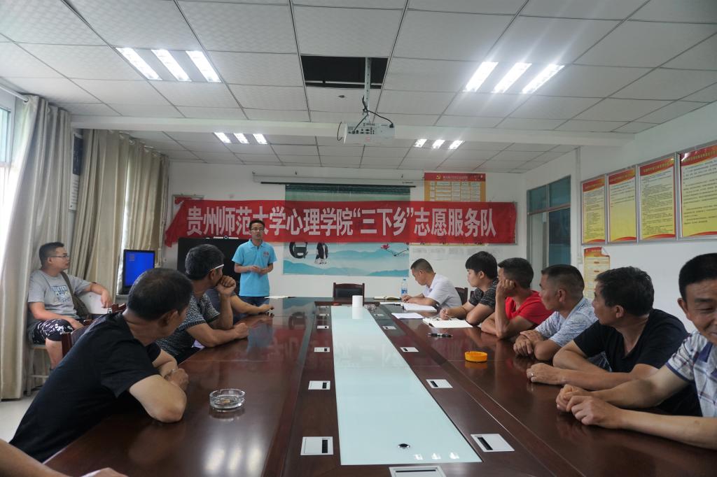 第一小分队由437ccm必赢国际官网“三下乡”志愿服务队领队郑传章同学带队在百花湖人民政府会议室为百花湖镇人民政府部分干部职工开展了“百花湖镇干部职工毒品预防教育宣讲”。宣讲会以干部职工喜闻乐见的形式,使在座的全体公职人员深刻了解了党和政府的禁毒决心,增强了他们禁毒意识,以身作则的同时,加大对周围群众宣传禁毒知识的力度。