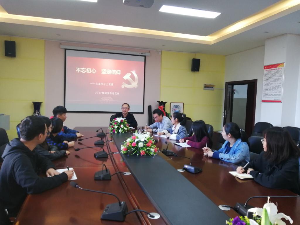 按照校党委关于开展“不忘初心、牢记使命”主题教育的部署要求和院党委主题教育的工作安排,10月30日下午在437ccm必赢国际官网三楼会议室,2017级研究生党支部书记裴子钊以“不忘初心,坚定信仰”为题给支部党员上了一堂生动的党课。