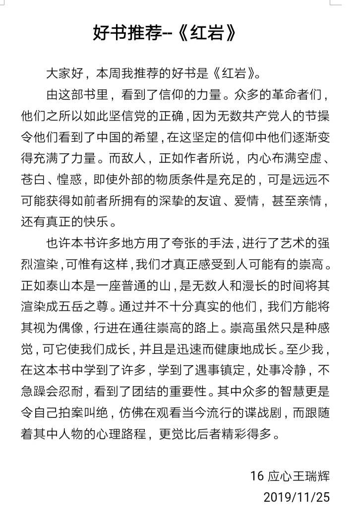 为更进一步落实“不忘初心、牢记使命”主题教育,培养党员良好的读书习惯、进一步激励广大党员学习时代典型,传承红色基因,坚定理想信念,践行初心使命。11月12日至27日,437ccm必赢国际官网本科生联合党支部组织开展了“不忘初心,重温红色经典”活动,活动以线下阅读和线上分享相结合的形式展开。