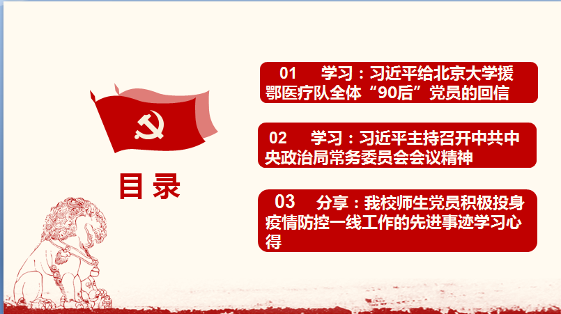 会前,支部成员孙绍棠搜集了相关事迹材料,并分享到支部群内。支部“云”会议于3月19日下午两点召开,由支部书记高阳老师主持,会议共分为三个部分,第一部分,学习习近平总书记给北京大学援鄂医疗队全体“90后”党员的回信,第二部分,学习习近平总书记于3月18日主持召开的中共中央政治局常务委员会会议精神。支部成员纷纷表示党员同志勇于担当,敬业奉献的精神是每一位党员极为宝贵的品质,高阳也表示在疫情期间,在做好自身防护的同时,要有服务群众的意识,不能忘记发挥党员先锋模范作用的重要性和必要性。