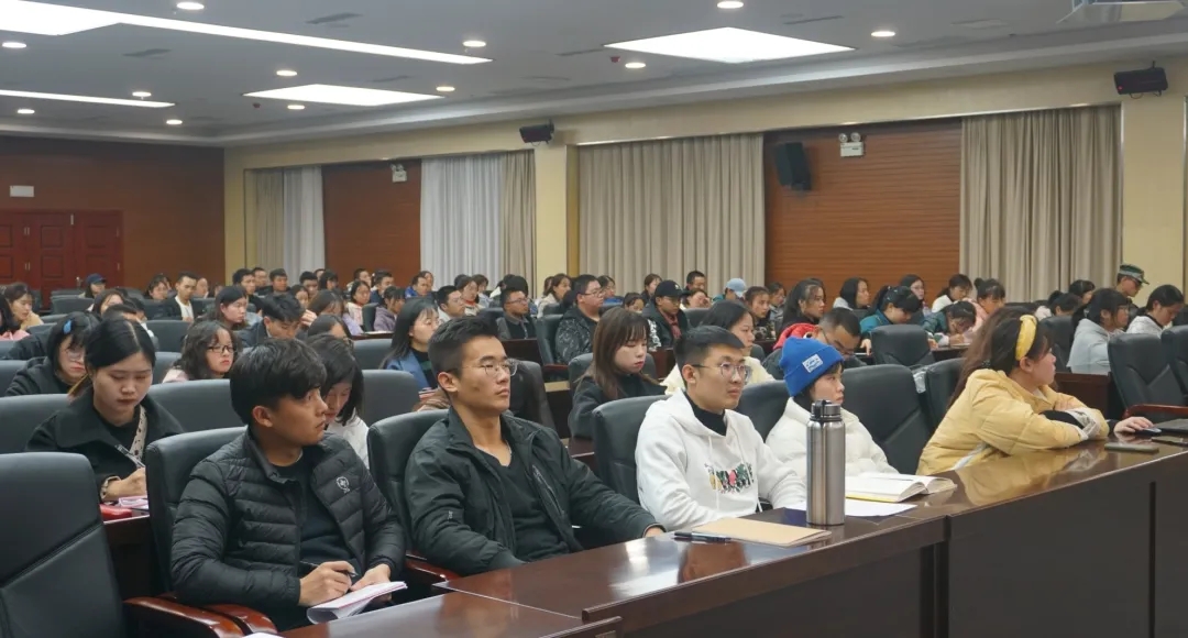 为深入学习宣传贯彻党的十九届五中全会精神,11月2日晚,437ccm必赢国际官网党委书记杨建原在花溪校区会议中心二楼,以《学习贯彻十九届五中全会精神》为主题,为学院200余名本科生、研究生代表上了专题党课。