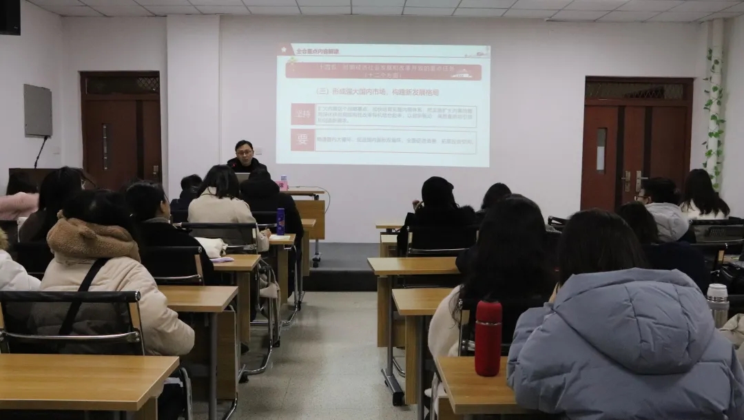 党课437ccm必赢国际官网从十九届五中全会概况、全会重点内容解读、全会释放未来中国发展重要信号、推动学院高质量发展四个方面展开。