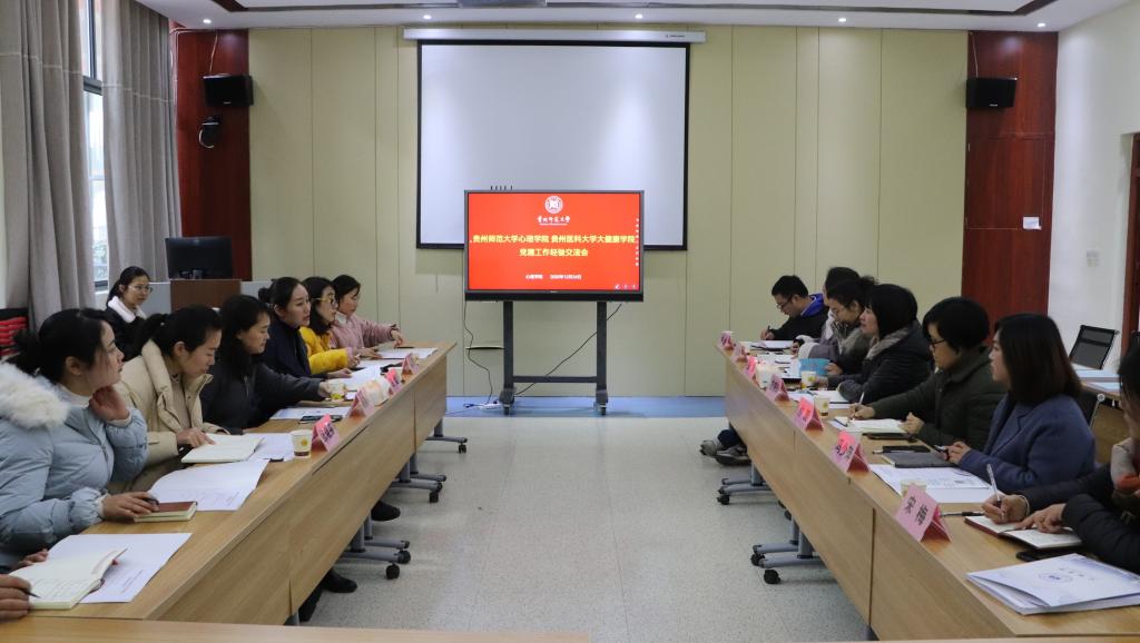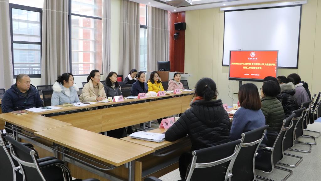 12月24日,437ccm必赢国际官网与贵州医科大学大健康学院在心理健康教育与咨询中心开展党建工作经验交流会。贵州医科大学大健康学院党委书记桂晓玲一行7人、437ccm必赢国际官网党委书记杨建原、副书记饶蕾,团委书记高阳等参与交流会,会议由饶蕾主持。