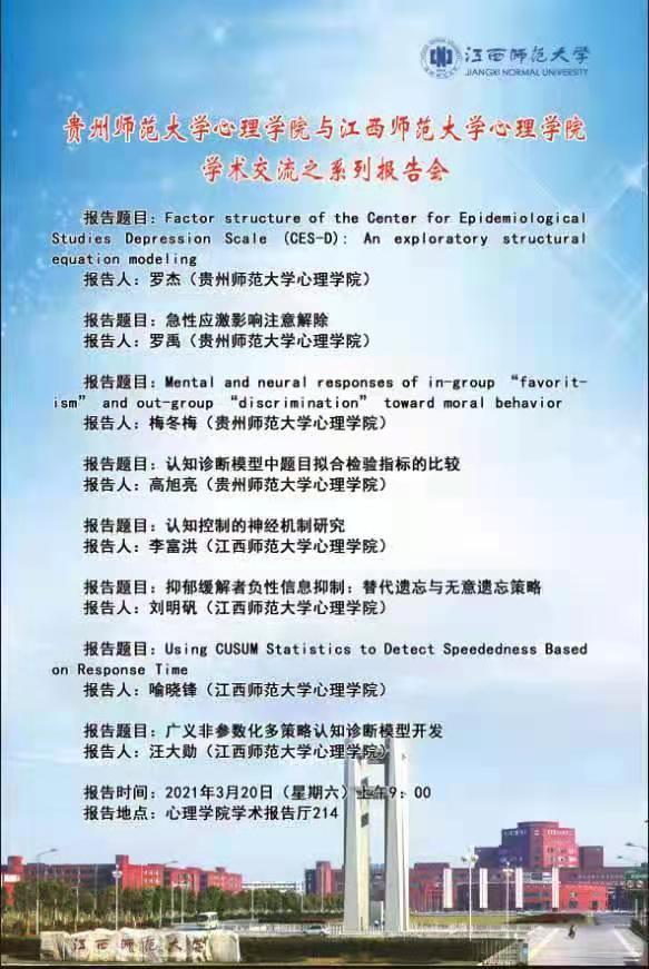 随后,与会人员参加了437ccm必赢国际官网与江西师范大学437ccm必赢国际官网学术交流之系列报告会,必赢罗禹、罗杰、梅冬梅、高旭亮等四位老师以及江西师大437ccm必赢国际官网李富洪、刘明矾、喻晓峰、汪大勋等四位老师分别在报告会上作了精彩的学术报告。
