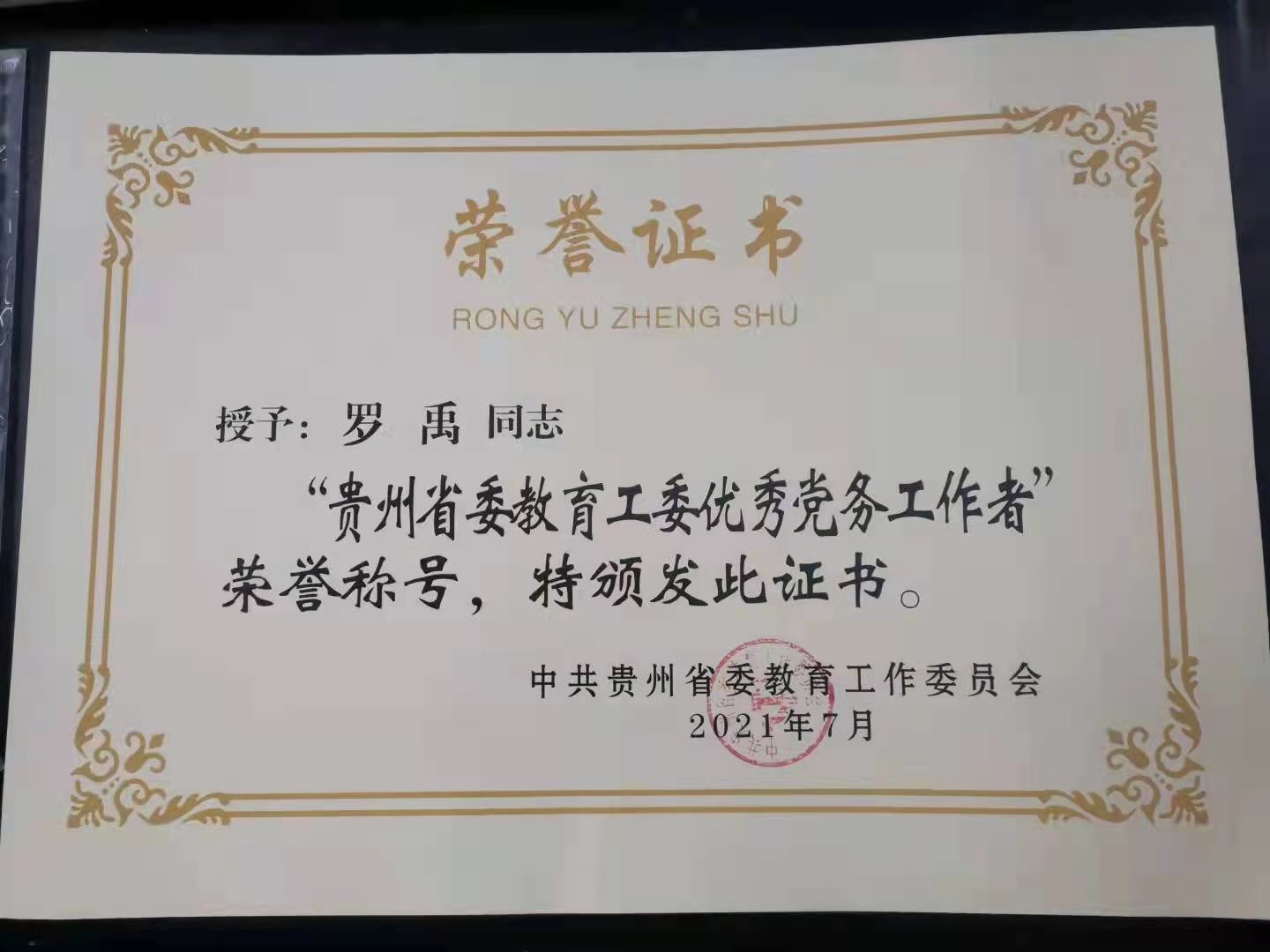 热烈祝贺必赢罗禹老师获“贵州省委教育工委优秀党务工作者”荣誉称号。