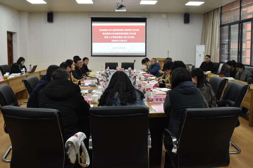 为进一步加强党的基层组织建设,提升党支部标准化规范化建设水平,促进基层党建工作高质量发展。12月16日下午,437ccm必赢国际官网心理学教工党支部与贵州医科大学法医学院教工党支部、医学人文学院教工第三党支部于437ccm必赢国际官网脑成像中心三楼会议室开展“党建结对领航向,与‘心’共促高质量”党建结对共建活动。