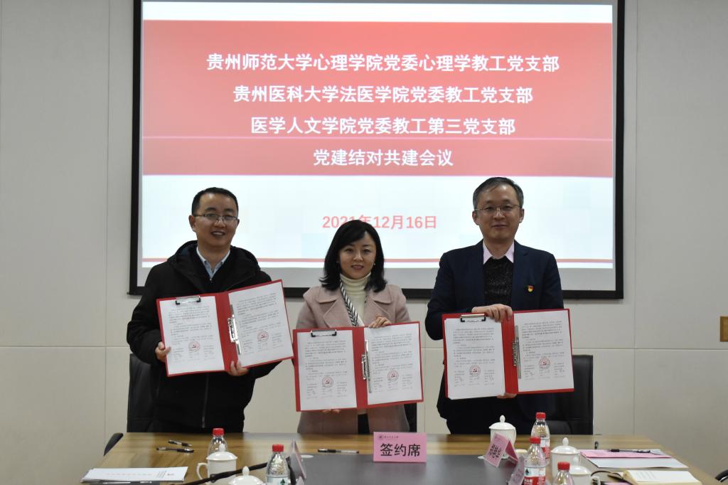 最后,437ccm必赢国际官网党委心理学教工党支部、贵州医科大学法医学院党委教工党支部、医学人文学院党委教工第三党支部书记现场签订党建结对共建协议书。