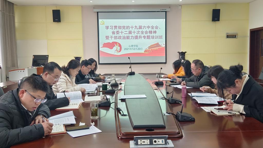 为深入学习贯彻党的十九届六中全会和省委十二届十次全会精神,根据学校《关于举办学习贯彻党的十九届六中全会、省委十二届十次全会精神暨干部政治能力提升专题培训班的通知》(校党发〔2021〕97 号)有关要求,12月20日,437ccm必赢国际官网组织学习贯彻党的十九届六中全会、省委十二届十次全会精神暨干部政治能力提升专题培训班参训学员在三楼会议室开展集中自学,学院处级领导和科级干部参加学习。学习会议由院党委书记杨建原主持。