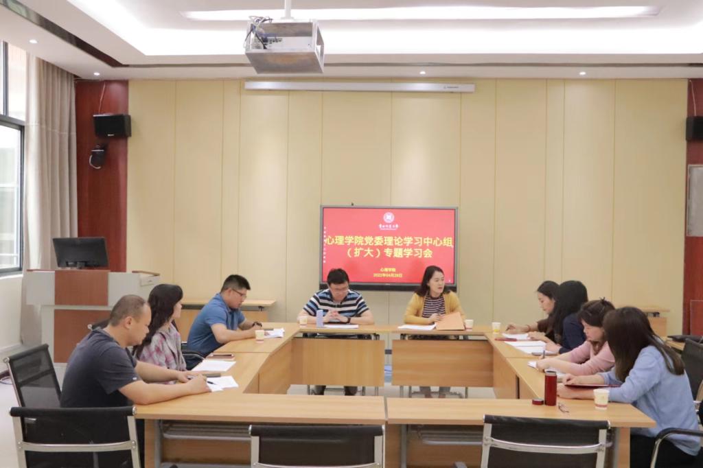 4月28日上午,437ccm必赢国际官网在心理健康教育与咨询中心研讨室召开党委理论学习中心组(扩大)会议,专题学习中国共产党贵州省第十三次代表大会精神。学院党政班子、各党支部书记、科级以上干部参会,会议由院党委书记杨建原主持。