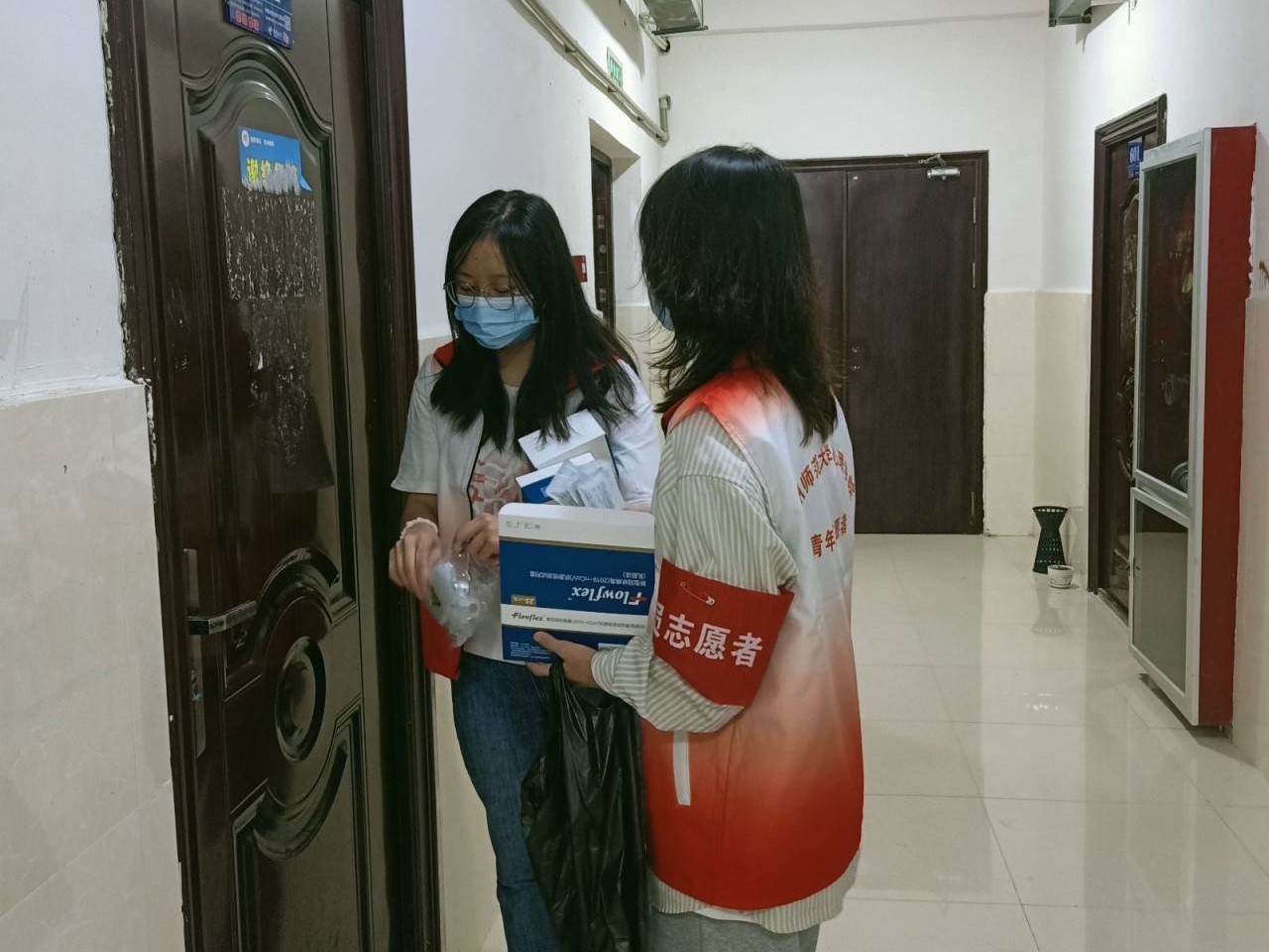 在党支部书记高阳老师的号召下,支部党员积极报名,主动参与。他们佩戴党徽、服从安排,冲锋在前。在做好自身防护的同时,逐间寝室分发抗原检测试剂,提醒同学们注意事项,对试剂进行回收并核对数量,全力以赴做好学生的抗原检测。当好防疫“宣传员”、“协调员”,为打赢疫情防控阻击战贡献了党支部的“红色力量”。