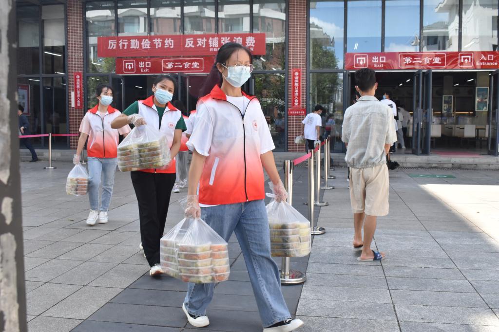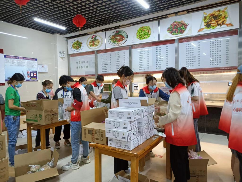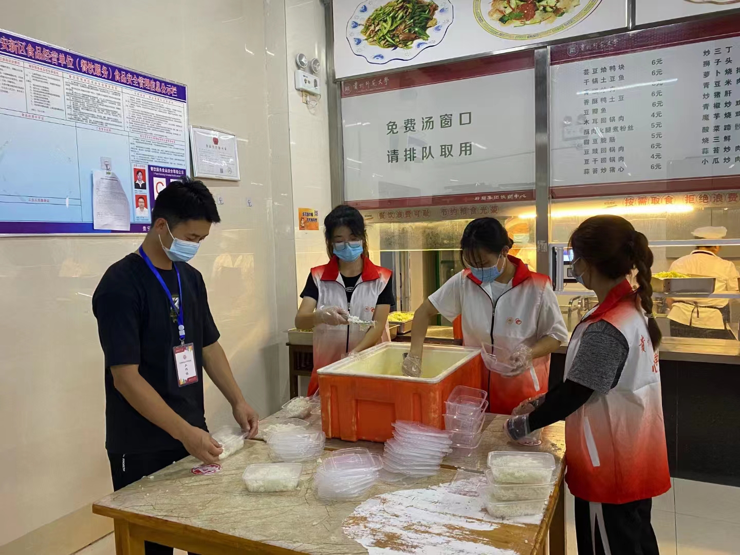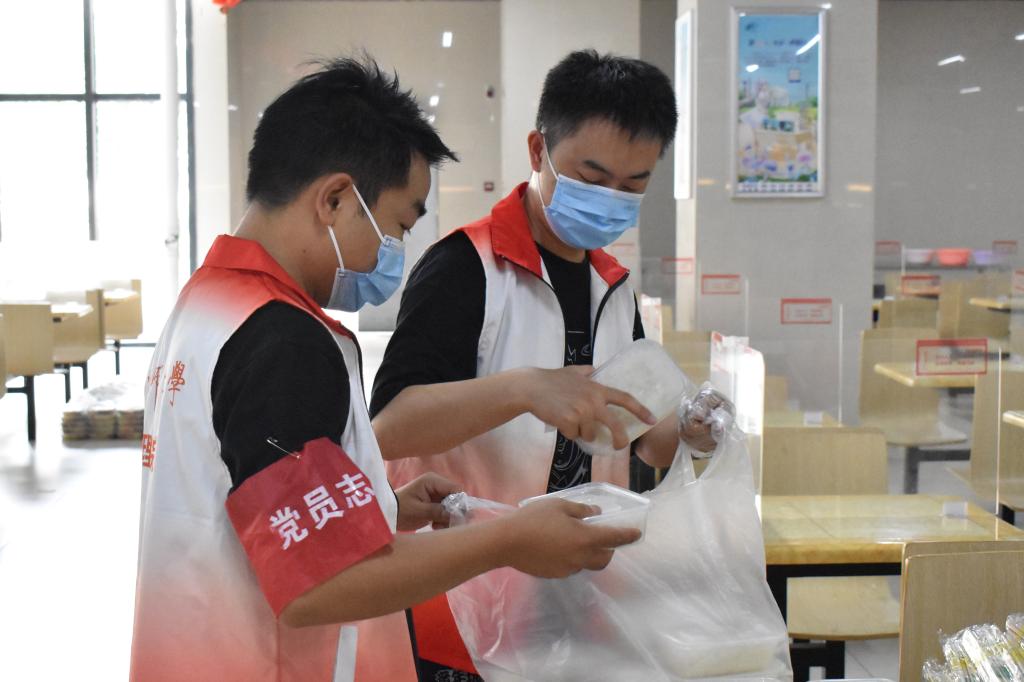 疫情无情,人间有爱。赢疫情防控攻坚阶段,学校宝山校区内食堂关闭,为解决宝山校区近5000名学生就餐问题,学校每日从花溪校区准备好三餐运送到宝山校区。437ccm必赢国际官网党员师生闻令而动,积极参与到为宝山校区学生打包、发放盒饭的工作中。