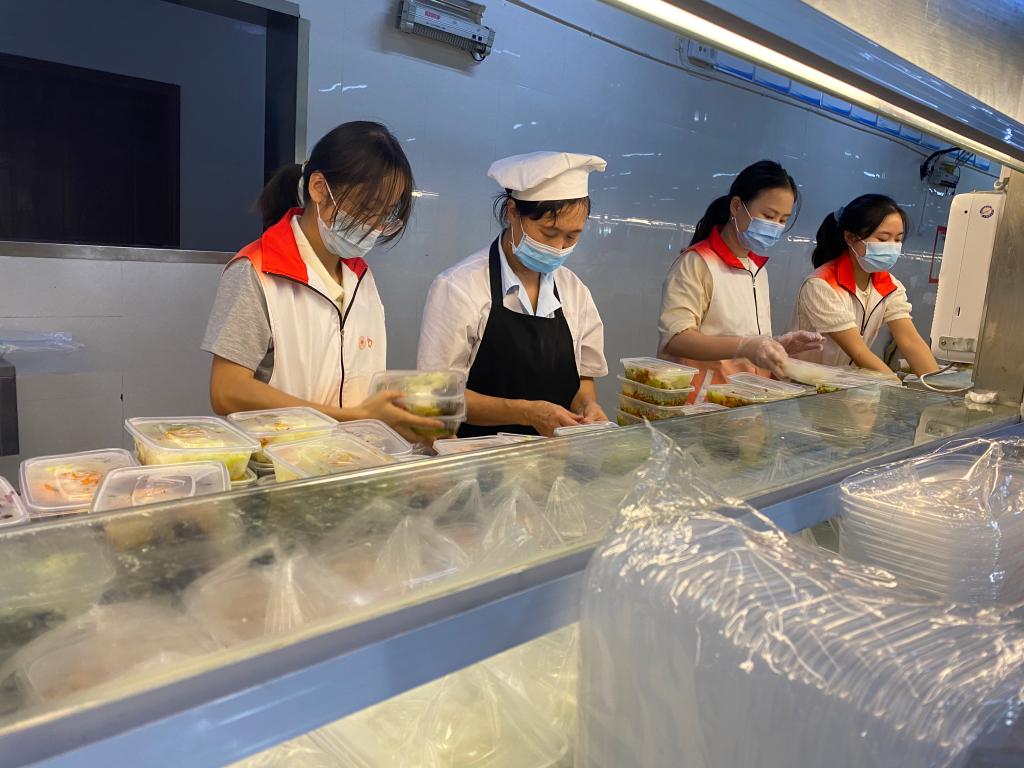 了解到学校食堂工作人员任务繁重,急缺打包、装车、分发盒饭的志愿者。437ccm必赢国际官网党员师生主动投入到相关工作中。9月20日,学院研究生第一党支部、2020级研究生党支部全体党员,自发组成一支打包、装车盒饭的助力宝山小分队,在学校食堂开展了一次生动的“主题党日活动”。