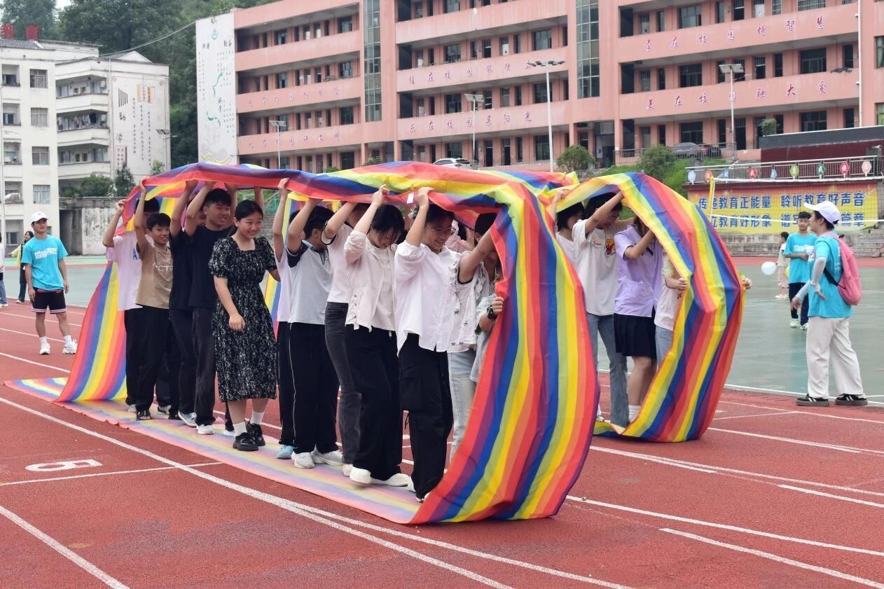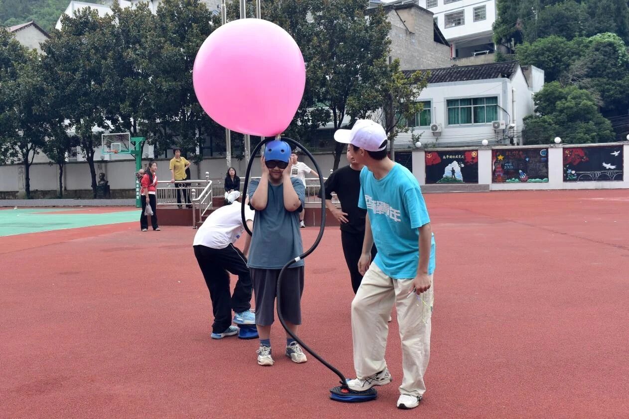 随后,队员们组织学生进行“同舟共济”、“头顶开花”、“猛龙过江”等心理素质拓展活动,帮助学生释放压力,放松身心。现场欢笑声此起彼伏。