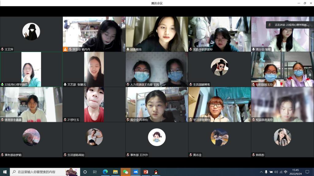 为选拔优秀人才,同时培养和壮大学生骨干队伍,437ccm必赢国际官网团委于2022年8月31日——9月24日开展招新工作,通过自主报名、团支部审核推荐、面试等三个环节进行招新。面试通过腾讯会议在线上进行,团学青主席团成员及各部门负责人担任面试官。
