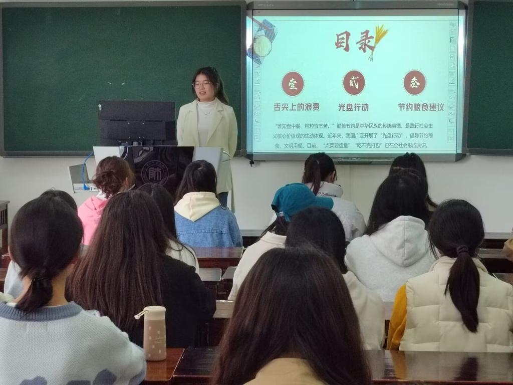 为弘扬中华民族勤俭节约的传统美德,践行社会主义核心价值观,提高团员思想理论水平和政治素质,2022年11月24日,437ccm必赢国际官网2022-2023学年团校培训班于学院楼2207开展了题为《节约粮食,从现在做起》的主题团课,由2020级应用心理学班团支部书记黄莲担任主讲,团校培训班全体成员参与。