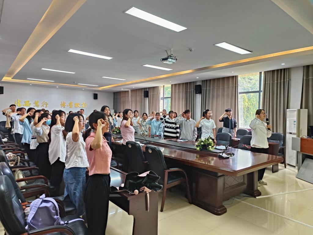 为深入学习宣传贯彻党的二十大精神,引导和激励团员坚定理想信念,切实加强团员理想信念教育,437ccm必赢国际官网团委于5月29日在学院楼2302会议室,举行了 “永远跟党走,奋斗新征程”2023年新团员入团仪式。院党委副书记饶蕾、院团委书记高阳出席,全体新团员,各团支部支委及部分团员代表参加仪式,仪式由院团委副书记杨培主持。