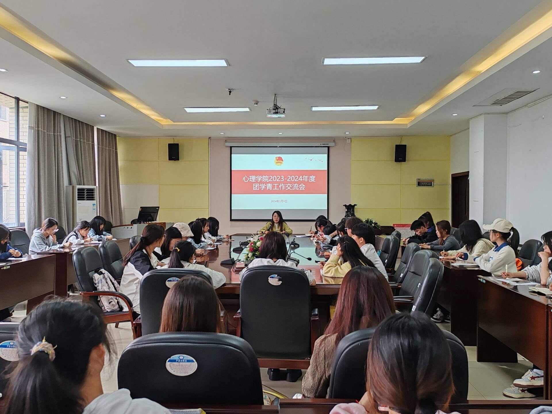 随后,高阳对上半学期的工作进行了总结,对大家在工作中取得的成绩给予了肯定,并对后续工作进行了具体安排。她指出5、6月份是大型活动季、毕业季,团学青全体成员要积极配合心理活动月的相关工作,调整工作状态,强化责任担当,全身心投入工作中,保质保量做好各项工作,认真筹备,及时反思,加强各学生组织交流沟通。而后,团委、学生会、青分会主要负责人分别就各个部门的工作进行了具体安排,希望各部门成员能够以认真负责的态度、积极向上的风貌对待工作。