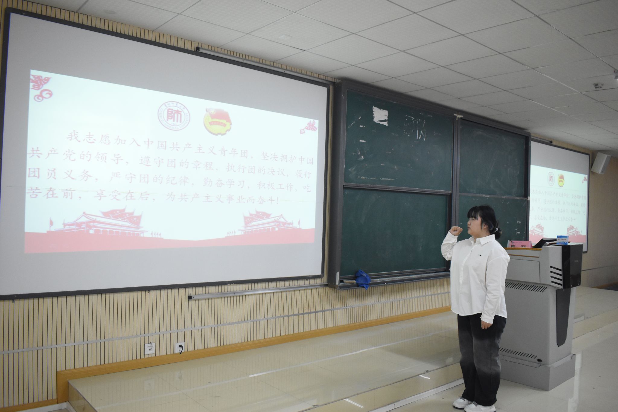仪式最后,高老师对新加入中国共产主义青年团的同学表示热烈的祝贺,并对新老共青团员提出了要求。希望全体团员青年时刻保持思想的先进性,牢记团员身份,不断践行入团誓词,树立远大理想,坚定不移听党话、跟党走,以实际行动报效国家;高老师指出团员青年要关注社会热点,了解社会发展,实事求是,勤于思考,敢于创新,主动向党组织靠拢,争取早日成为一名光荣的共产党员,为中华民族的伟大复兴做出贡献。