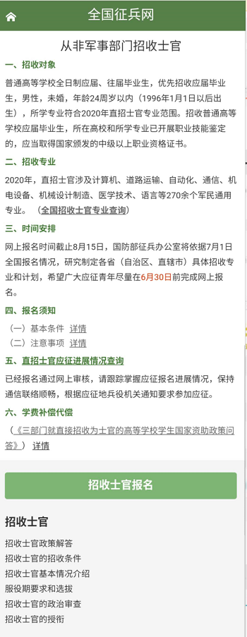 近日,2020年从普通高校毕业生中直接招收士官工作全面展开,全国征兵网开通直招士官网上报名窗口。